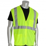 PIP 302-0702Z Economy Type R Class 2 Mesh Safety Vest with Two Pockets & Zipper - Yellow/Lime