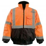 Radians SJ110B type R class 3 two-in-one bomber jacket has a zip out removable fleece lining and 2" silver hi-viz reflective tape place both horizontally and vertically on the safety jacket.