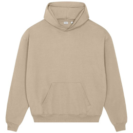A boxy hoodie with a dry hand feel. The unique character of organic cotton provides a perfect place for a brand logo.