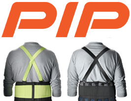 Protect your back from strain and injury with PIP back support belts. Select from mesh or elastic back with velcro front closures. Styles include high visibility yellow or solid black. These support belts are economical yet high in quality.