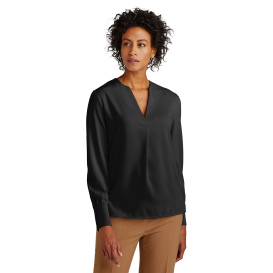 Brooks Brothers BB18009 Women's Open-Neck Satin Blouse - Deep Black
