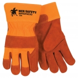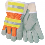Premium grade side select gunn cut split cow leather palm. Washable double layer duck cuff, 8 oz yellow canvas back.