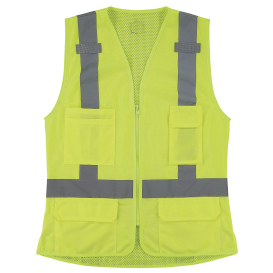 Stay seen by others with these high visibility GloWear safety vests by Ergodyne. These ANSI class 2 and 3 vests come in several styles, making it easy to find one that suits your needs. These GloWear vests also have reflective striping for increasing your visibility to others at night.