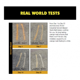 Krylon Quik-Mark inverted marking paints have a high solids formulation that gives them the boldest, brightest and most visible markings in the industry. These fast-drying products penetrate and adhere to hot surfaces, and deliver a line you can count on for all your locating, marking and surveying needs. Available in solvent and water based technologies.