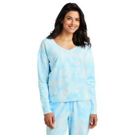 Port & Company LPC140V Ladies Beach Wash Cloud Tie-Dye V-Neck Sweatshirt - Glacier