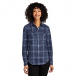 Port Authority LW672 Ladies Long Sleeve Ombre Plaid Shirt - True Navy