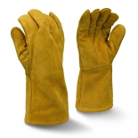 The Radians RWG5310 leather welding glove is made from select split brown cowhide leather for lasting durability and protection. It features a full foam-lined sock interior for comfort, a reinforced palm for added strength, a wing thumb for improved mobility, and 14-inch fully welted seams stitched with aramid thread for superior heat and flame resistance.
