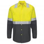 The most important aspect of a job is staying safe. In a brilliant fluorescent shade and silver reflective striping, our Hi-visibility shirt ensures you're visible across the yard, while the folded collar, button-closure front, and two chest pockets keep you practical and professional. Stay safe and stay dedicated with this ready-to-go work shirt.