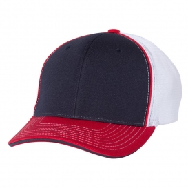 Richardson 172 Fitted Pulse Sportmesh Cap with R-Flex - Navy/White/Red Tri